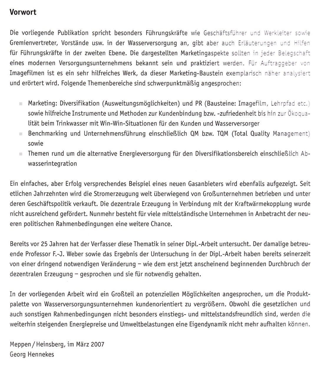 "Marketingaspekte und Diversifakationsmöglichkeiten bei Wasserversorgungsunternehmen"